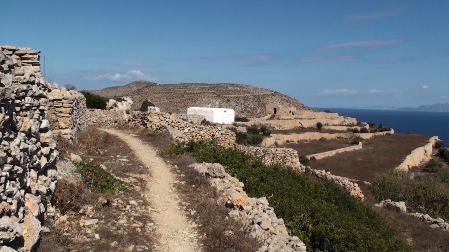 Wanderung von der Chora nach Angali: Die Chora verlässt man in westlicher Richtung auf einem Eselweg, der bei der Kapelle Agios Savas vorbeiführt und nach etwa einem Kilometer in die geteerte Strasse nach Ano Meria mündet. Etwa dreihundert Meter später bei Agios Stavros, nimmt man den Weg nach links Richtung Agios Christos. Link zu AllTrails mit Details der Wanderung.
