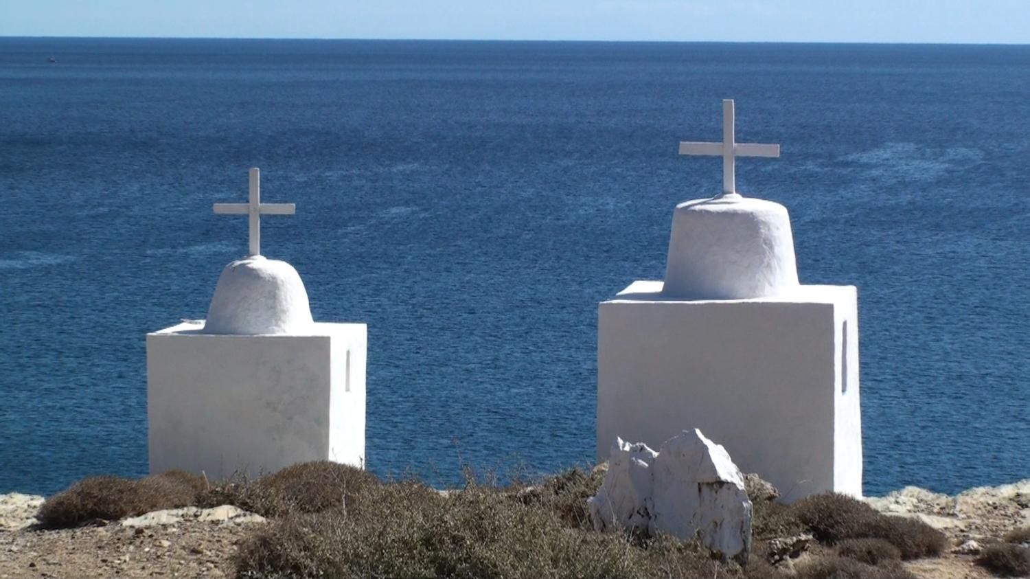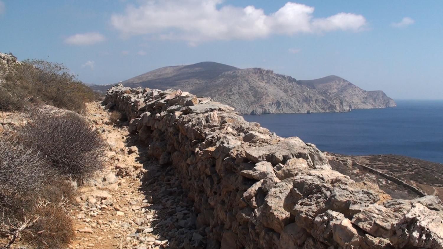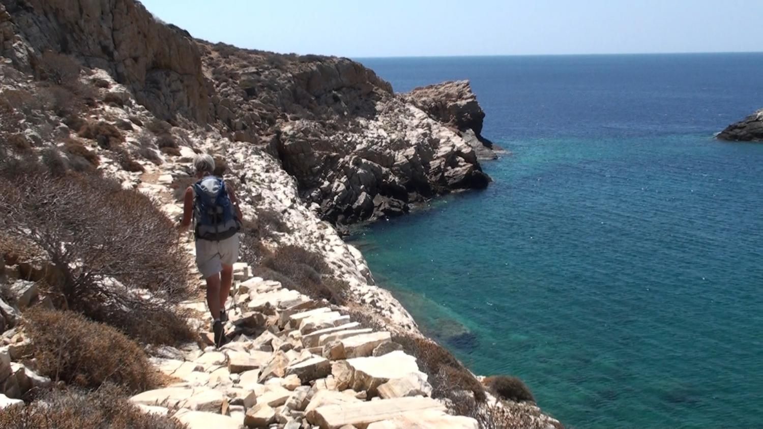 Ein traumhafter Abstieg mit Blick zur Angali Bucht und in weiter Ferne zur Westkykladen Insel Milos führt zur hübsch gelegenen Kapelle. Von dort muss man etwas improvisieren um den Durchgang zur Fyra Bucht zu finden. Von da kommt man über einen Küstenpfad weiter nach Angali. Im Büchlein von Dieter Graf findet man drei ähnliche Touren.