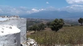Von Sivas kann man auch zu Fuss zum Moni Odigitrias aufsteigen. Der Weg führt durch eine fruchtbare Landschaft am Rande der Messara Ebene, mit viel Olivenhainen und Getreidefeldern. Nach etwa einer Stunde kommt man an einer kleinen Kapelle vorbei mit herrlichem Blick zum Ida Gebirge. Ein markanter Aufstieg führt uns zur eingestürzten Kapelle Agia Paraskevi. Nachher folgen wir dem Fusspfad durch einen Graben, bis wir von der Höhe aus auf die Strasse zum Kloster gelangen, welcher wir für den letzten Km folgen: AllTrails.