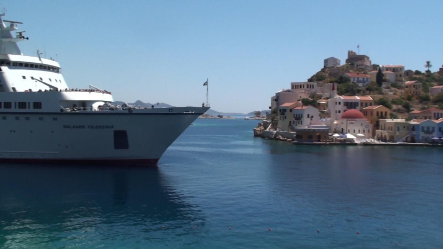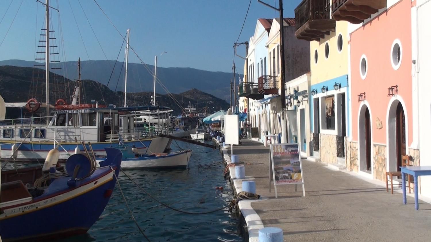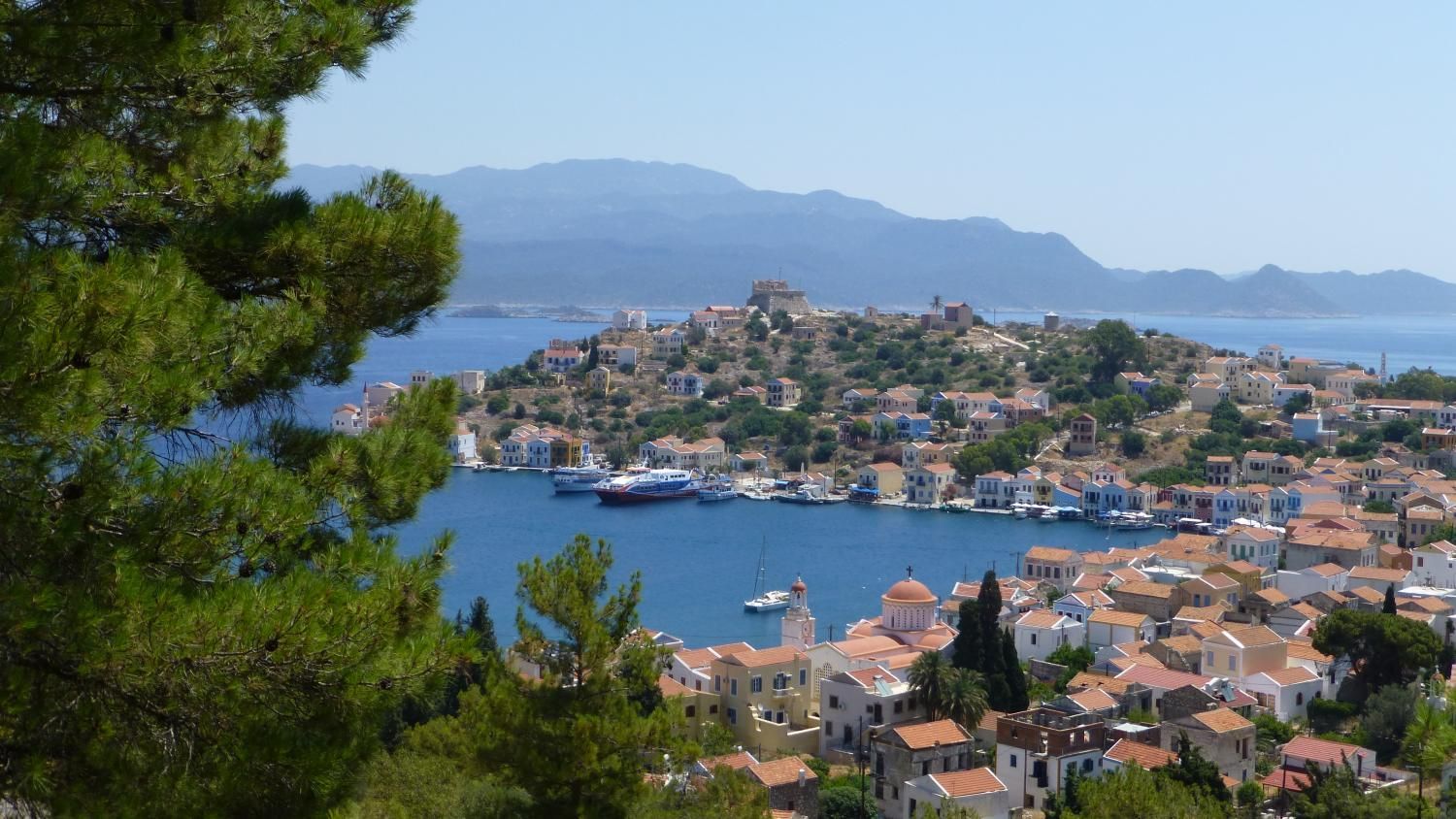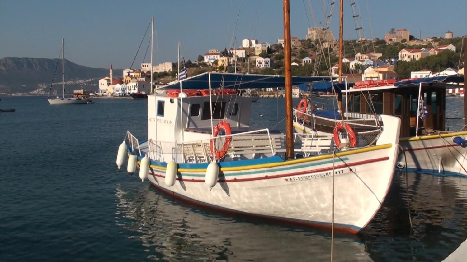 Wird auch als „Aussenposten Europas“ bezeichnet, denn diese winzige Insel liegt nur einen „Steinwurf“ weit entfernt von der Türkei, ganz am östlichen Rand der Ägäis. Durch seine Lage bedingt, haben viele Mächte die Insel beherrscht (Türken, Franzosen, Engländer u. Italiener). In den zwanziger Jahren des letzten Jahrhunderts diente Kastellorizo den Franzosen als Landeplatz für ihre Wasserflugzeuge, welche auf dem Weg nach Indien waren. Im 1. Weltkrieg erbauten die Franzosen von den Schiffsanlegestellen am Meer, hinauf auf die schattenlose Hochebene Rampen, um ihre Geschütze dorthin hoch zu ziehen. Eine Wanderung zu einem dieser noch gut erhaltenen Bauwerke ist empfehlenswert! Überhaupt bietet dieses Eiland einige Möglichkeiten „per pedes“ tolle Orte kennen zu lernen. Meist ist aber ein steiler 200m hoher Aufstieg zu bewältigen, denn hinter dem Hafenort Megisti ragt eine Felswand hinauf, die es zu überwinden gilt, will man auf der Hochebene die verschiedenen Sehenswürdigkeiten erwandern. Zu erwähnen ist ein Kloster das dem Agios Georgios sto vouno gewidmet ist, sowie die antiken Weinkelter mit Namen „Patitiria“ und das von dorischen Steinquader umrandete Paleochora mit seinen drei Kapellen. Megisti als Ort bekundet viel Charme. Nicht vergeblich wurde es einst „Mikro Parisi“, Klein Paris genannt. An der Hafenpromenade reiht sich eine Taverne an die andere. Die dazugehörenden Häuser sind meist gut erhalten und im neoklassizistischem Stil gebaut. Hat man Glück, kann man vom Tavernentisch aus eine Meeresschildkröte, eine „caretta“ beobachten, die im Hafenbecken schwimmt!