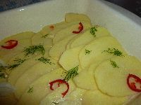 Wie Du Dir unweigerlich vorstellen kannst, habe ich dieses Gericht zum ersten Male als Beilage zu Fisch auf der "Kartoffel- Insel" Naxos erhalten und zwar in einer Taverne in Moutsouna, nach einer anstrengenden Wanderung. Es schmeckte ganz einfach himmlisch!