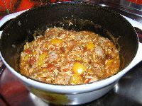 - Jouvetsi = "Reisnudel"-Eintopf mit Schaffleisch
