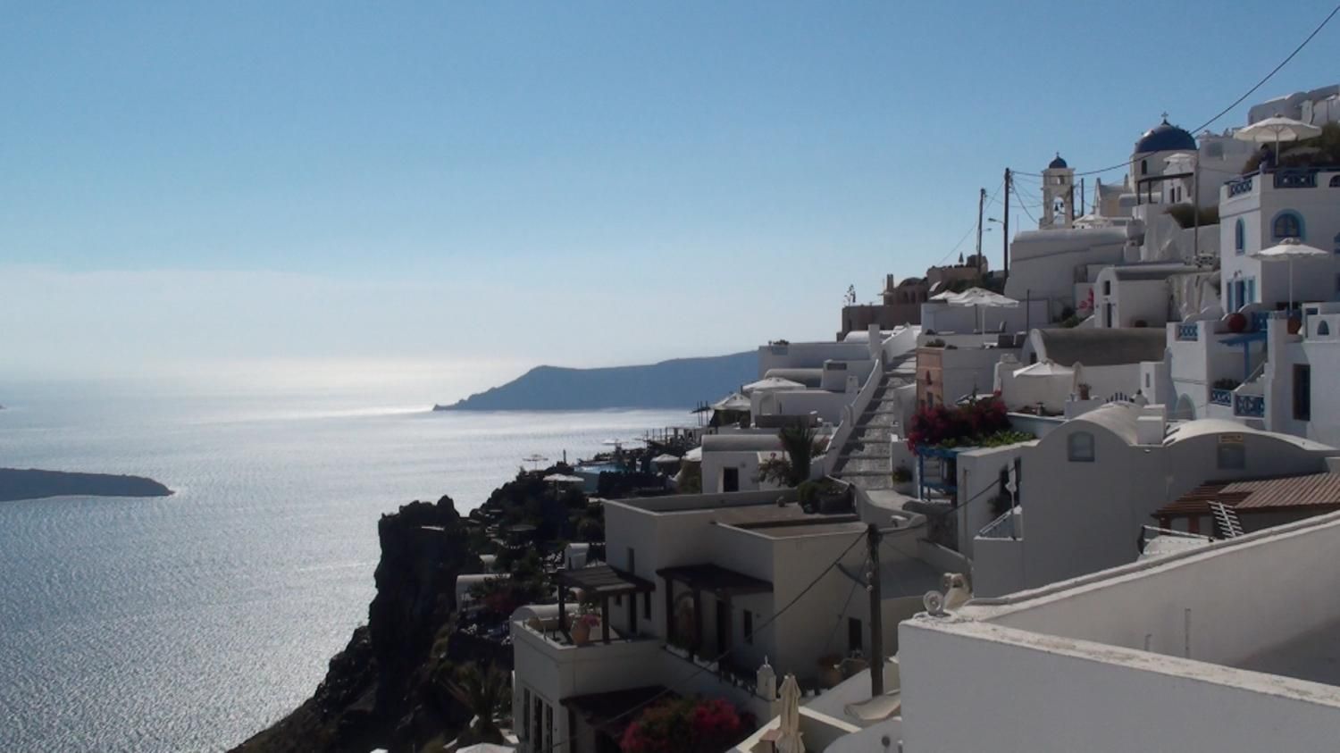 Es gibt wohl kaum ein eindrücklicheres Erlebnis in der Aegaeis als die Einfahrt mit der Fähre in die Caldera (Kraterbucht) von Santorini. Egal ob man von Naxos/Ios oder aber von Kreta her kommt, es ist einfach überwältigend zu sehen wie die Dörfer Oia, Imerovigli, Firostefani und die Hauptstadt Thira (Fira) wie ein Schneehäubchen auf dem fast senkrecht abfallenden Kraterrand liegen. Hier kann man sich am besten vorstellen mit welcher Urgewalt der Vulkangipfel vor ca. 3500 Jahren explodiert ist und der Krater vom Meer überspült wurde. Eindrücklich ist auch die Vorbeifahrt am Nea Kameni, der noch aktiven, rabenschwarzen Vulkaninsel im Zentrum des Kraters. Thirasia auf der Gegenseite von Santorini, ist auch ein Teil des Kraterrandes der die Katastrophe überdauert hat. Abgesehen von den faszinierenden vulkanischen Phänomenen bietet Santorini eine einmalige Ausgrabungsstätte bei Akrotiri, einer Siedlung welche damals vollständig verschüttet und damit konserviert wurde. Es ist darum kein Wunder, dass all diese Attraktionen Santorini zu einem der wichtigsten Touristenzentren der Kykladen gemacht hat.