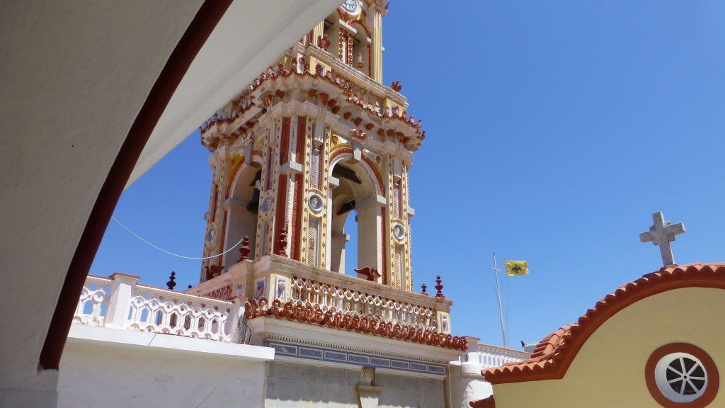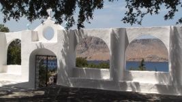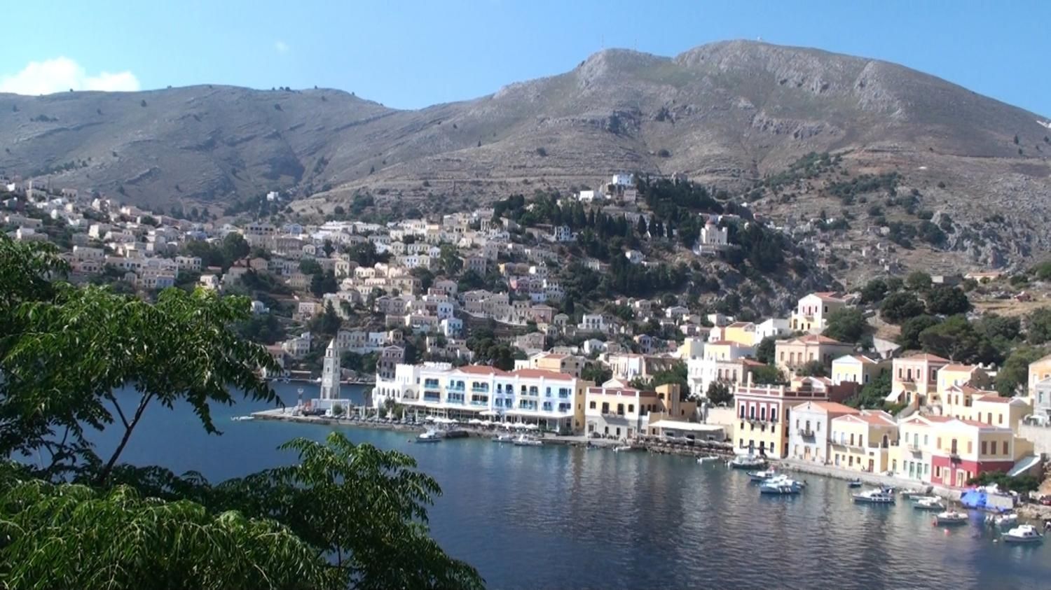 Diese Insel ist von Rhodos aus ein beliebtes Tagesausflugsziel, da sie in einer ungefähr zweistündigen Überfahrt leicht zu erreichen ist. Ein mehrtägiger Aufenthalt ist aber auch empfehlenswert, da die Ausflugstouristen nur über Mittag die Insel bevölkern. Vorher und nachher ist es ruhig und es gibt viel zu entdecken und zu erwandern. Die Fähreneinfahrt in den Hafen Gialos ist imposant, da sich auf beiden Seiten der Hafenbucht farbige, neoklassizistische Häuser mit Satteldächer an die markanten Hügelschmiegen. Viele der einstmals zerfallenen Häuser sind in den letzten Jahren stilgerecht renoviert worden und haben somit dieser, einstmals so wichtigen Stadt, ihren vornehmen Charakter wieder zurückgegeben. Zur Oberstadt Horio hinauf führen steile Treppenwege mit z.T. wohlklingenden Namen wie „Kali Strata“ („Gute Strasse“). Die Insel war einstmals wegen ihren Schiffswerften berühmt. Mit der Schwammfischerei und dem Seehandel zusammen, brachten es die Symioten zu einigem Wohlstand, so dass in der Blütezeit 20‘000 Einwohner in Gialos und Umgebung wohnten. Heute sind es noch ungefähr 3‘000. Ausserhalb der Stadt, meist von den Eintagestouristen nicht besucht, trifft man auf eine Kräuter- und Baumbestandene Gebirgswelt mit idyllischen Kirchen, Kapellen und Klöster, die bestens erwandert werden können, oftmals noch auf intakten Eselspfaden. Zu bedenken ist aber, dass Symi heisser als andere Inseln und ziemlich „hügelig“ ist. Die von uns gemachten Wanderungen erfordern etwas Kondition, da sie mehrere Stunden dauern und praktisch keine Möglichkeit besteht per öffentlichen Verkehrsmitteln zurück zu kehren, denn es gibt nur sehr spärliche Busverbindungen in die Oberstadt/Pedi und zum markanten Kloster Panormitis. Meistens wird dieses imposante Kloster, das dem Erzengel Michael geweiht ist, von den Ausflugsbooten auf dem Hin- oder Rückweg nach Rhodos angefahren. Somit bietet sich den in-und ausländischen Besuchern die Gelegenheit die grosszügige Anlage mit der Ikone, der Wundertätigkeit nachgesagt ist, zu besuchen.